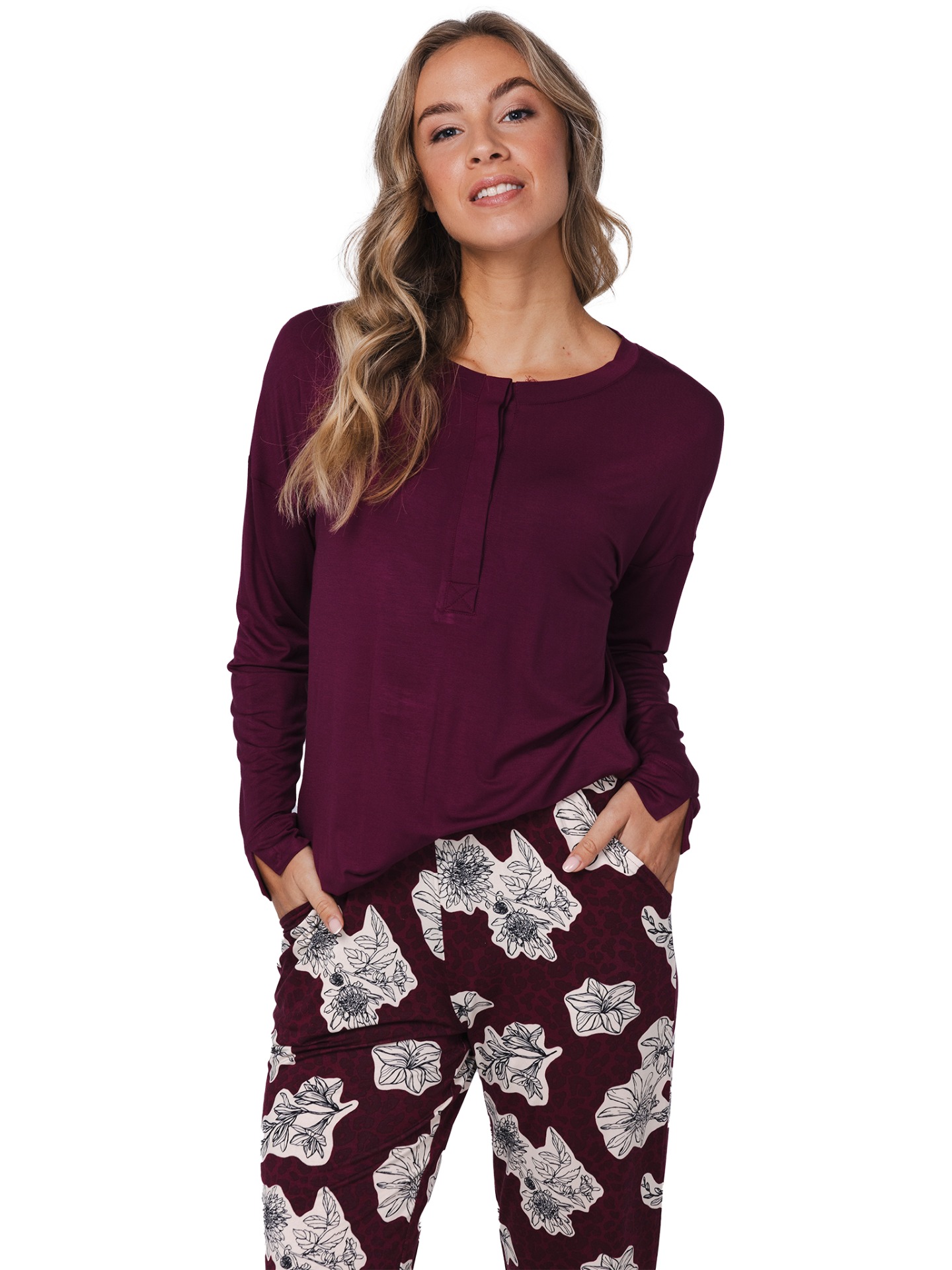 Manon pyjama bordo met knoopjes van Pastunette